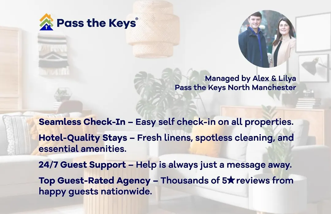The spacious 2-bedroom Sunny Apartment 10Mins To Coop Arena - Pass The Keys Manchester lies in a residential area of Manchester, 2.7 km from the public park "Piccadilly Gardens". Wi-Fi is provided for both business and leisure activities.